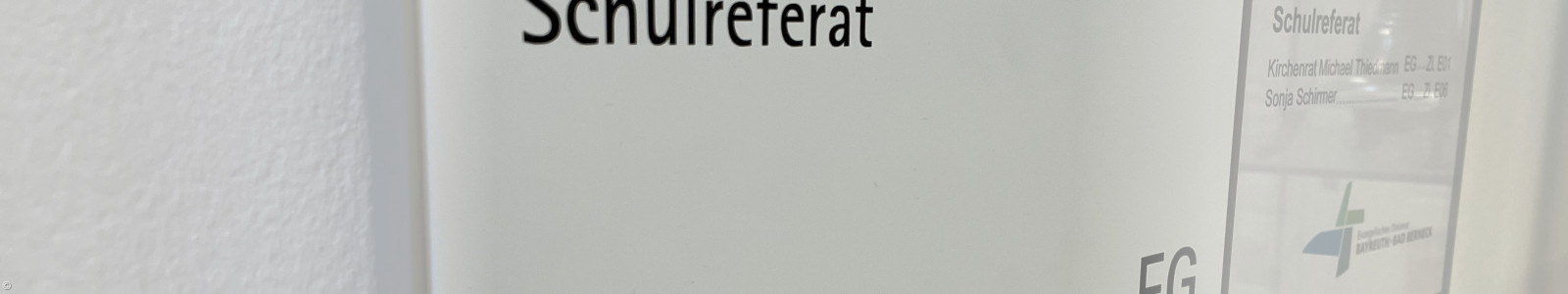 Schulreferat im Dekanatsbezirk Bamberg Schulreferat im Dekanatsbezirk Bayreuth Schulreferat im Dekanatsbezirk Coburg Schulreferat im Dekanatsbezirk Forchheim Schulreferat im Dekanatsbezirk Hof Schulreferat im Dekanatsbezirk Kronach-Ludwigsstadt Schulreferat im Dekanatsbezirk Kulmbach Schulreferat im Dekanatsbezirk Michelau Schulreferat im Dekanat Münchberg Schulreferat im Dekanatsbezirk Naila Schulreferat im Dekanatsbezirk Rügheim Schulreferat im Dekanatsbezirk Selb Schulreferat im Dekanatsbezirk Thurnau Schulreferat im Dekanat Wunsiedel